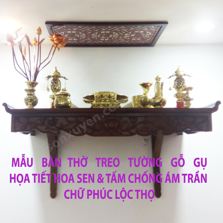 Bàn thờ teo tường gỗ gụ cao cấp - Mẫu Phú Quý Hoa Sen