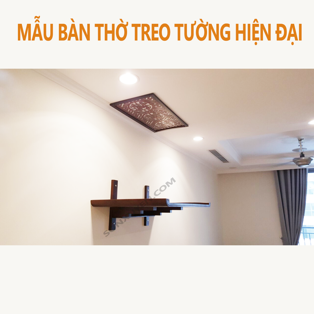 Bàn thờ treo tường được thiết kế riêng để lắp đặt vừa đẹp trong phòng khách hiện đại tại các khu chung cư cao cấp. Bàn thờ được làm từ gỗ hương nên có độ bền qua nhiều thế hệ, không mối mọt, không cong vênh, nứt vỡ trong thời tiết khí hậu nóng khô, nhiệt độ cao của mùa hè.
