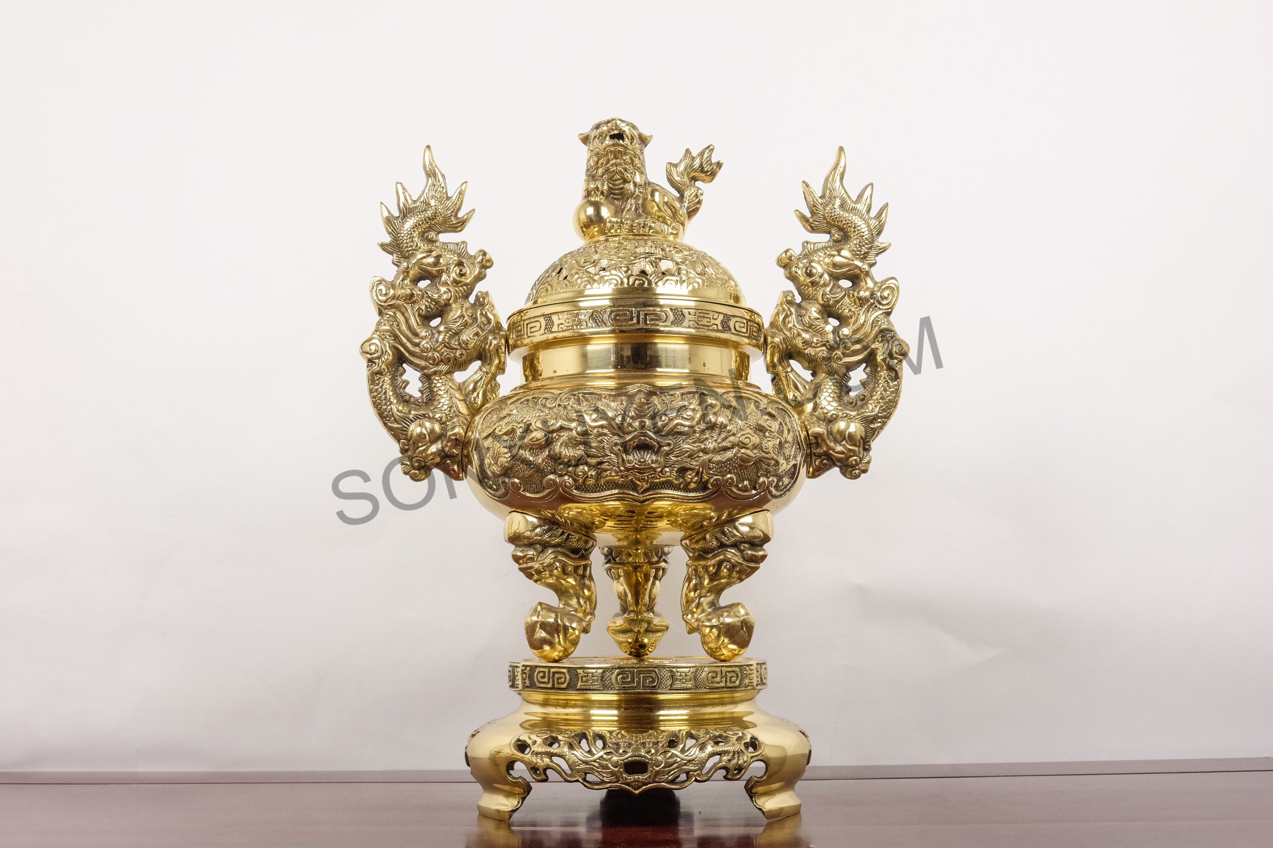 Lư đỉnh Hung Yi Đài Loan tai rồng cao 51 cm. Vĩnh viễn sáng bóng như vàng 18K.